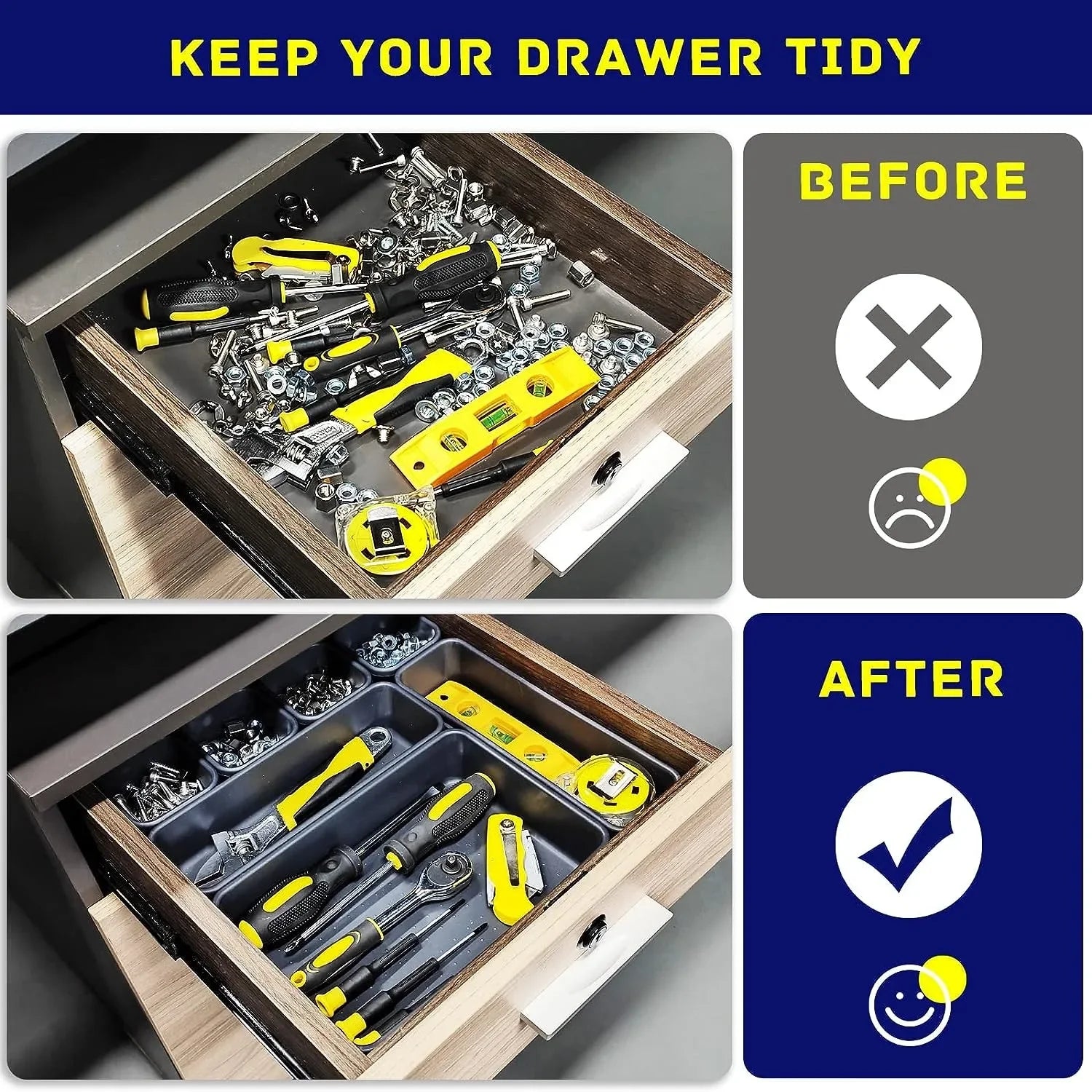- Versatilidade: ideal para caixas de ferramentas, gavetas, carrinhos de ferramentas e até para uso na cozinha, banheiro ou escritório.