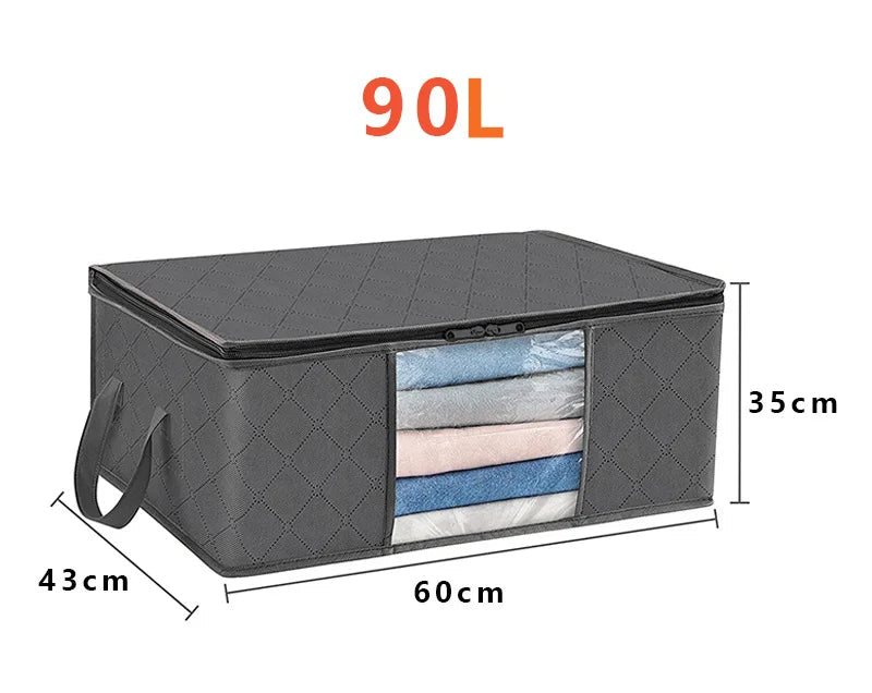 Organize seu armário com praticidade usando o Saco de Armazenamento de Roupas Dobrável Espaçoso. Com dimensões de 90x60cm, ele é perfeito para guardar roupas de cama, cobertores, edredons, casacos e diversas peças, mantendo tudo protegido contra poeira e sempre arrumado.