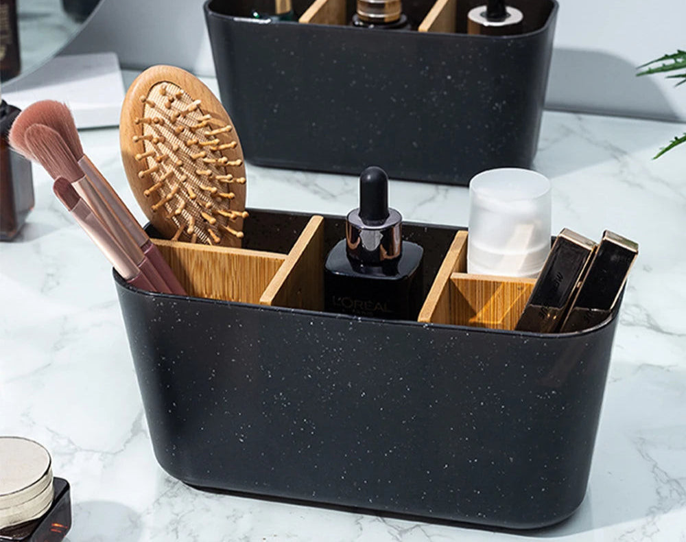 - 1 × Porta Escova e Acessórios de Banheiro em Bambu