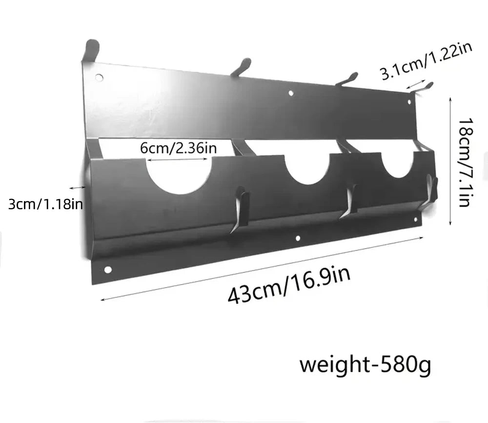 Com espaço projetado para acomodar ferramentas elétricas, chaves, chaves de fenda e outros acessórios, o rack mantém seus equipamentos essenciais sempre à mão e de forma organizada.